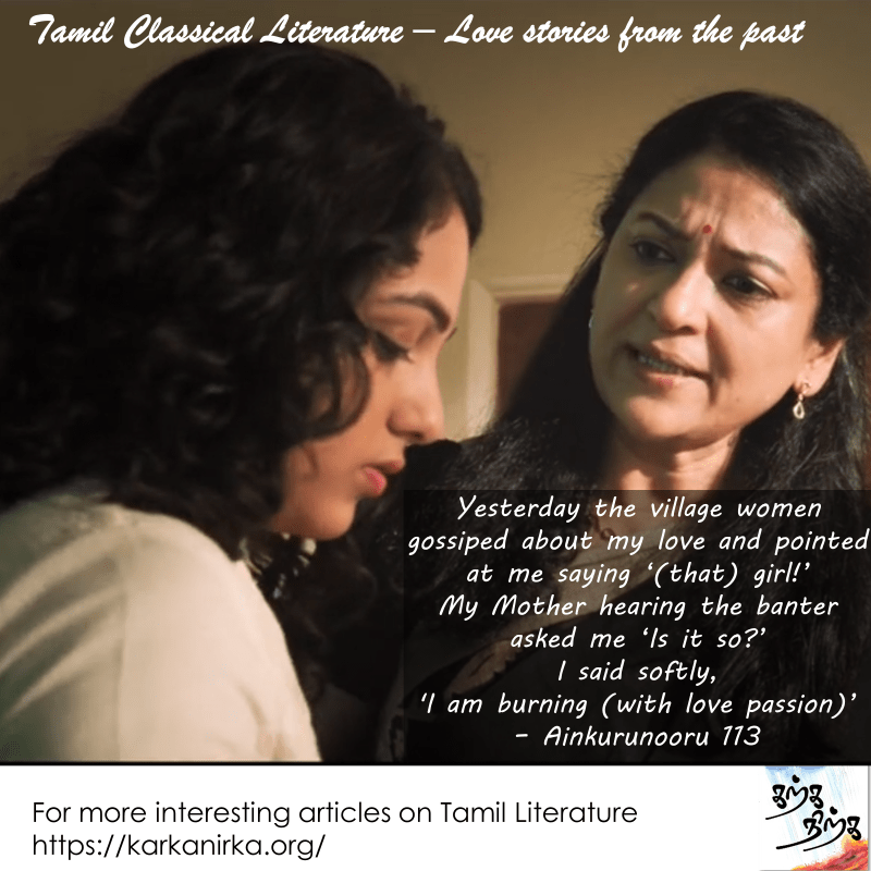 Reworked on one of my old posts. Author – Historian Venkatesh Ramakrishnan reached out to me on this poem. Now he is trying his hand on Sangam literature translations! Welcome to the club. This is one of the cutest poems in Sangam literature. Thalaivi is getting caught by mother. The situation is beautifully portrayed in few lines.