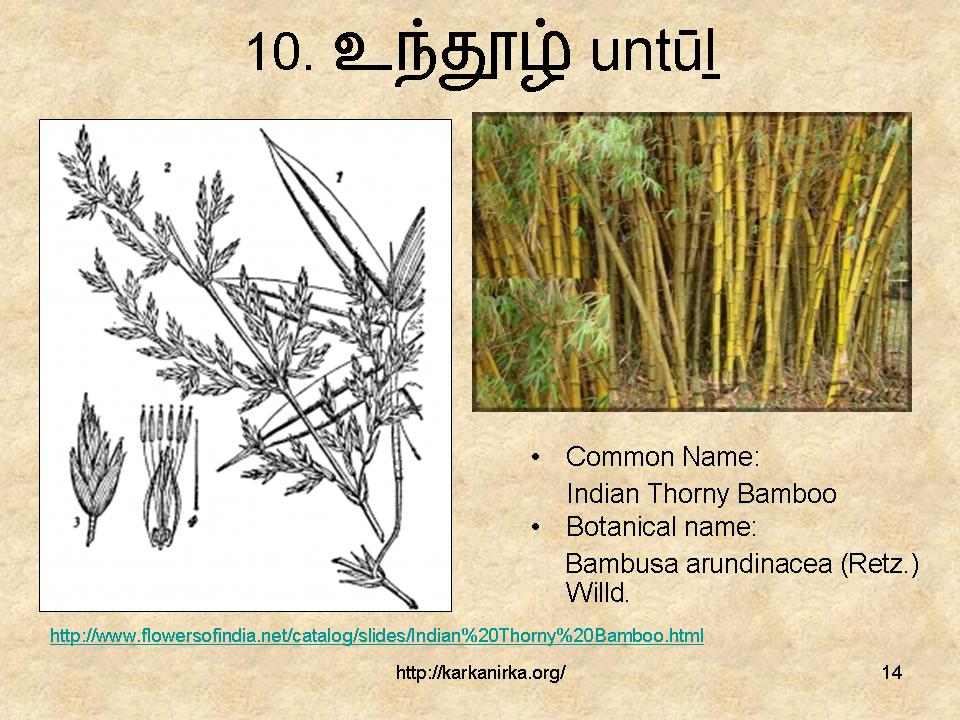 பெருமூங்கில் – Large bamboo, 1. tr., Bambusa arundinaca; மூங்கில் மரவகை.