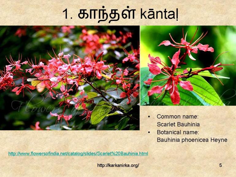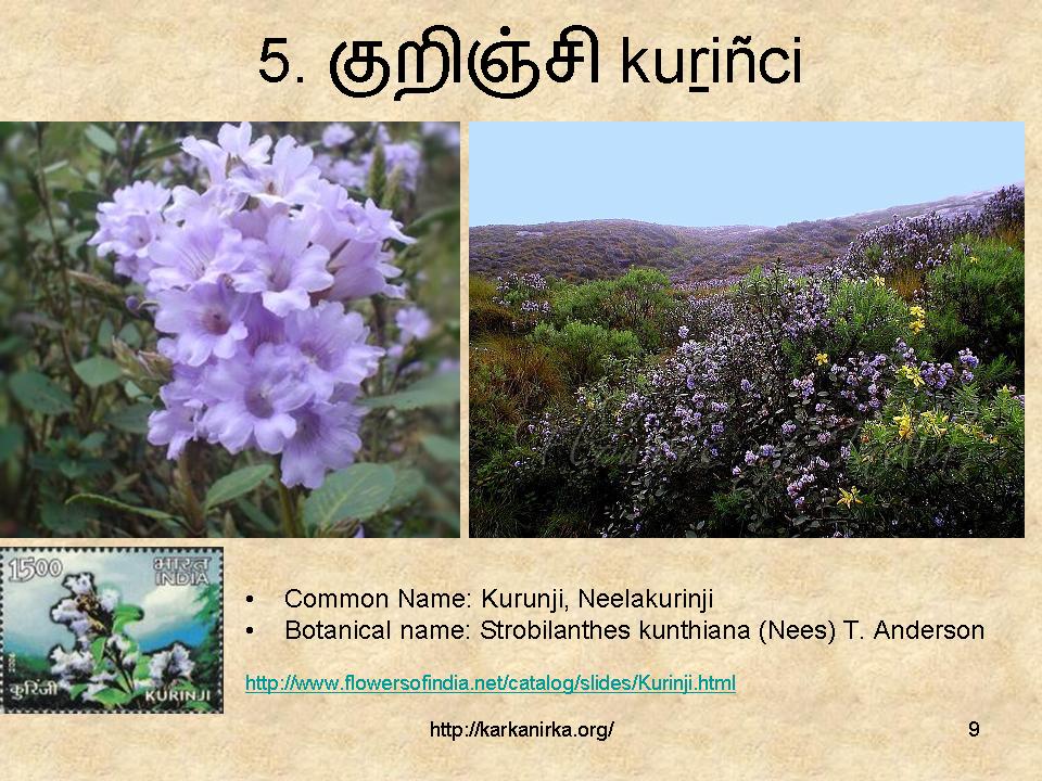 Flowers 1- 10 out of the 99 flowers listed in Kurunji paatu.