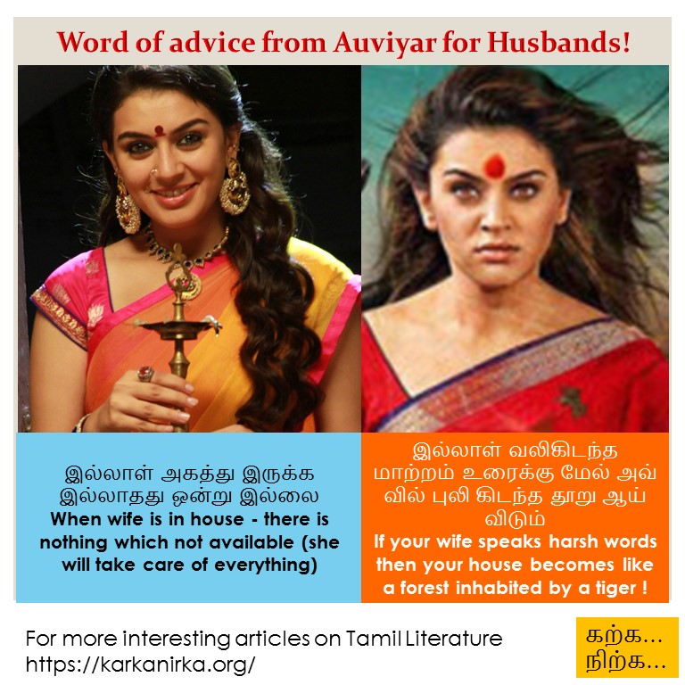 Warning to Husbands from Auvaiyar and most of them would have experienced the below poem in their life.