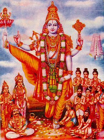more demons were born. The Mothers prayed to Devi and from her wrath appeared the black-faced Kali. She chopped the demon and drank the the demon’s blood in her skull without allowing the blood drops to touch the earth. Thus the demon’s army was destroyed. Unsatisfied by the blood thirst, Kali devoured everything in her sight in the fig forest – Alankadu. Narada seeing the plight of people, request Vishnu to step in, who in turn advises only Shiva can destroy Kali’s ego.