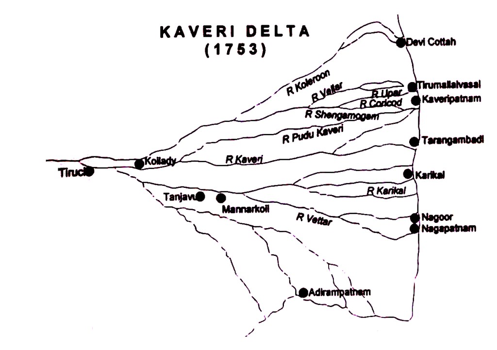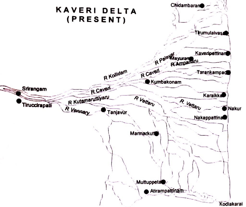 Alagarai, Tiruchy, Kiranur and Pudukottai meeting the sea in the region where the present-day Agniyar and Ambuliar (South East of Pudukottai) meet the sea.