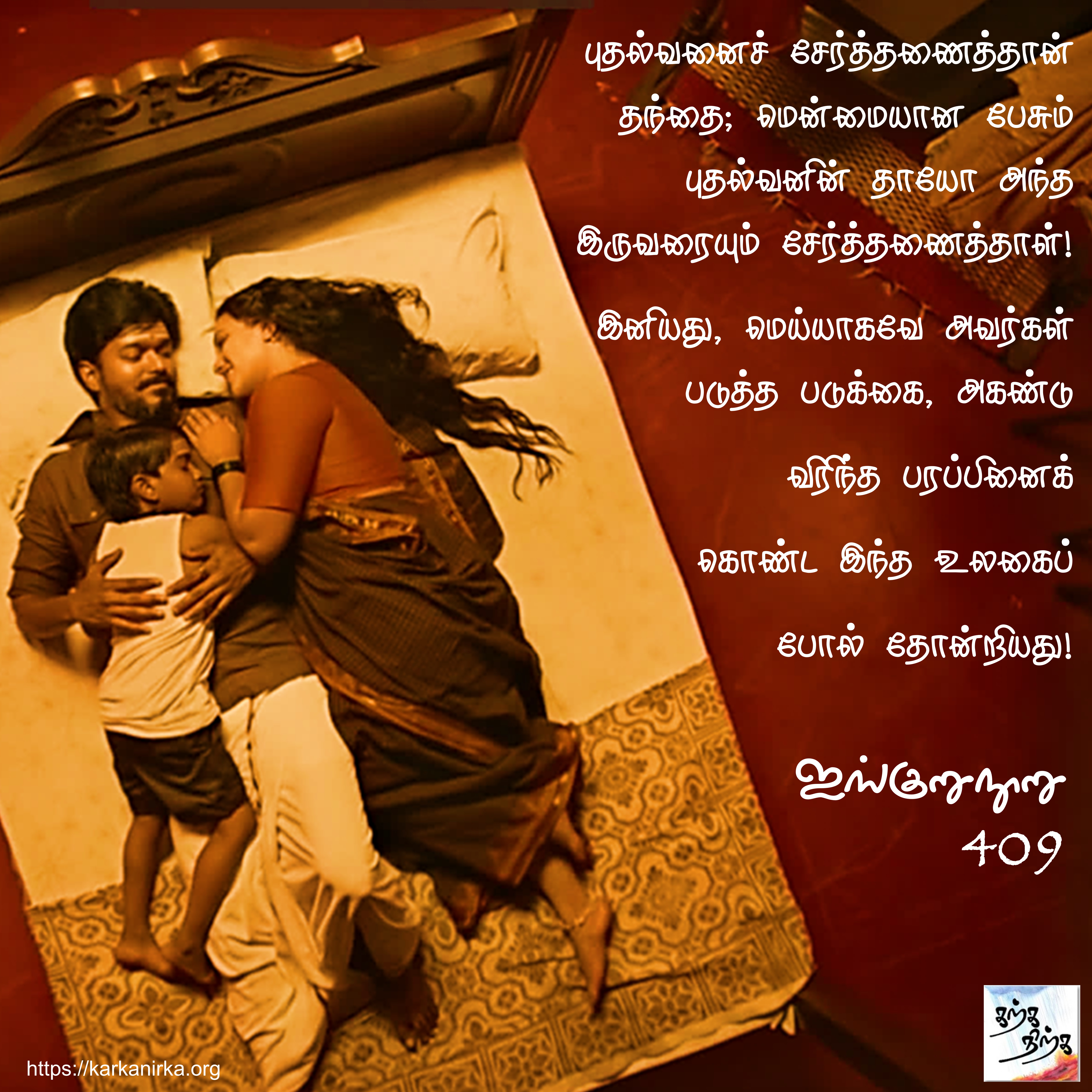 Situation: Thalaivi (Heroine) have eloped with her lover – Thalaivan (Hero). Thalaivi’s family disown her. But as time passes by they want to see how she is. Her foster mother (mother of her friend (Panki)) makes a trip to Thalaivan’s village and visits their house. Seeing their happiness she reports back to Thalaivi’s mother.