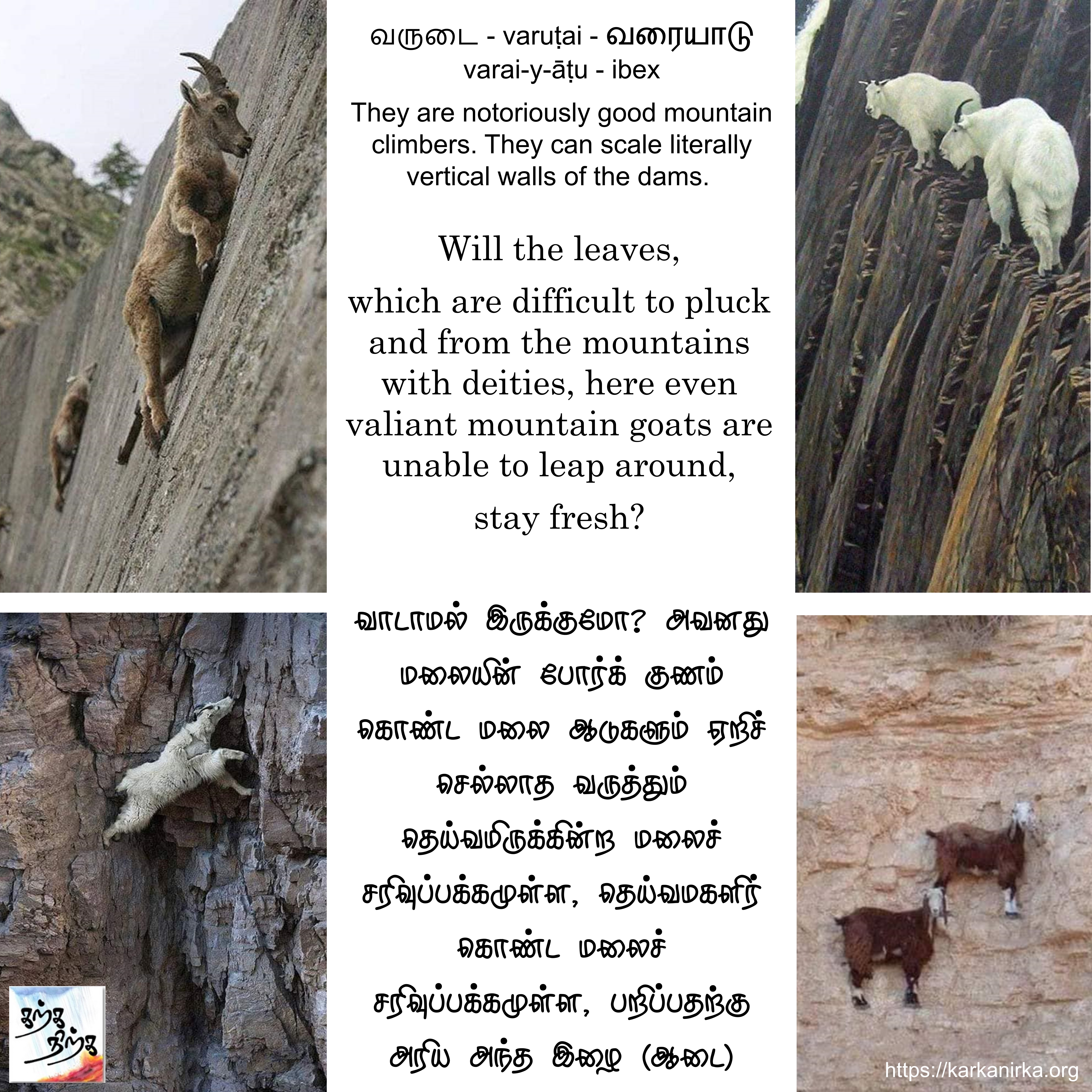 varuṭai or Ibex can climb on near vertical walls and are expert climbers. They are used in the poem to glorify effort taken by the hero.