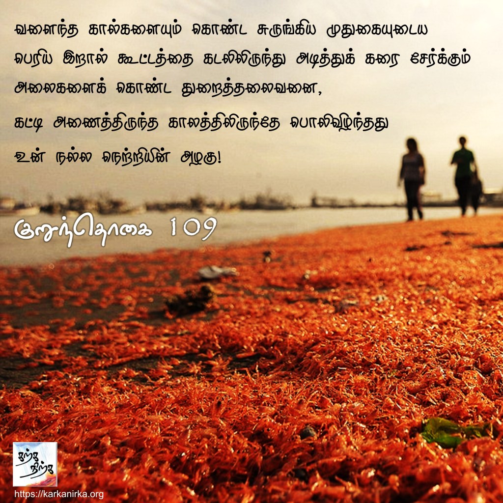 Kurunthokai 109, Nampi Kuttuvanār, Neythal Thinai – What the heroine’s friend said to her, as the hero listened from nearby