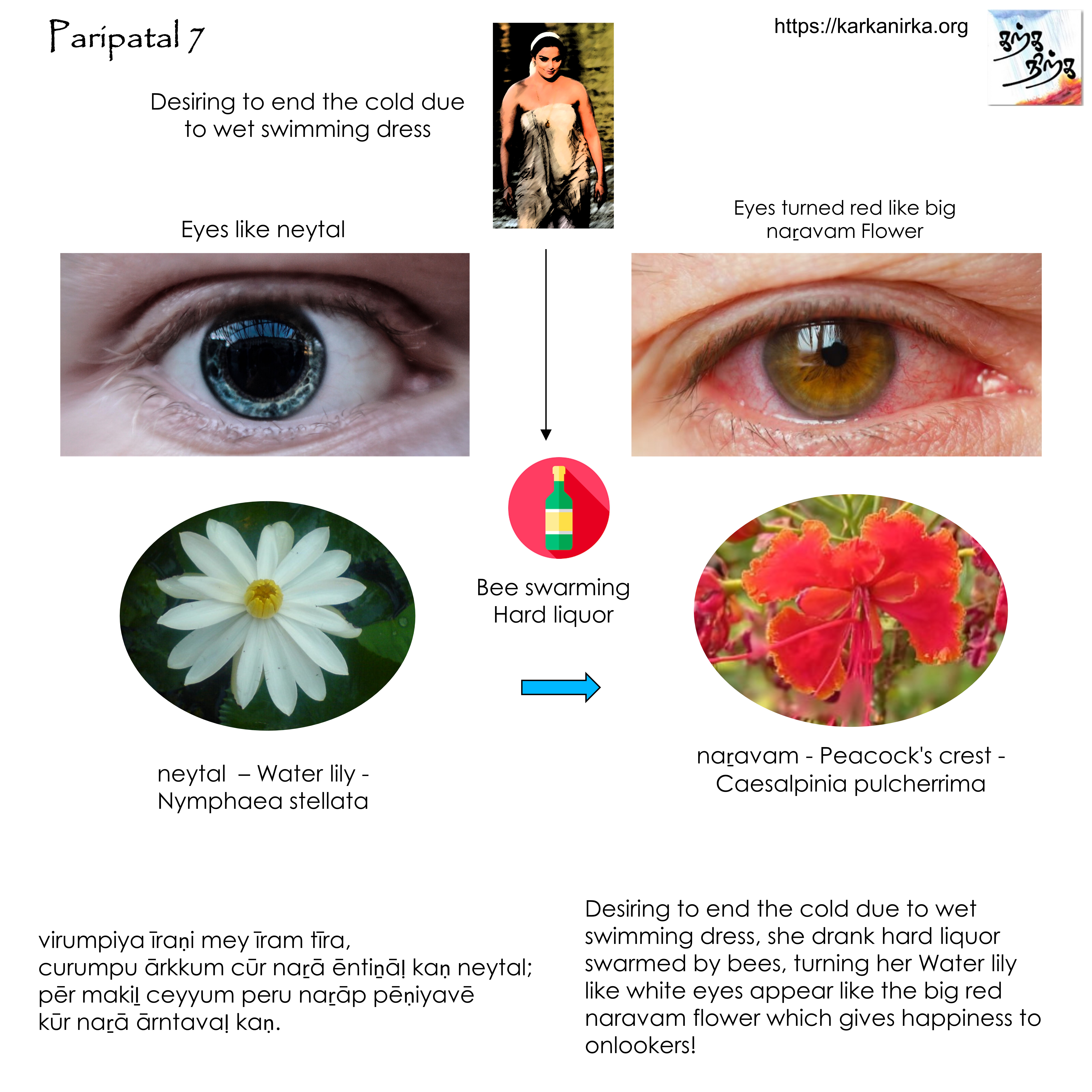 - Nara – means liquor as well as Naravam flower, poet has used both usage in the poem