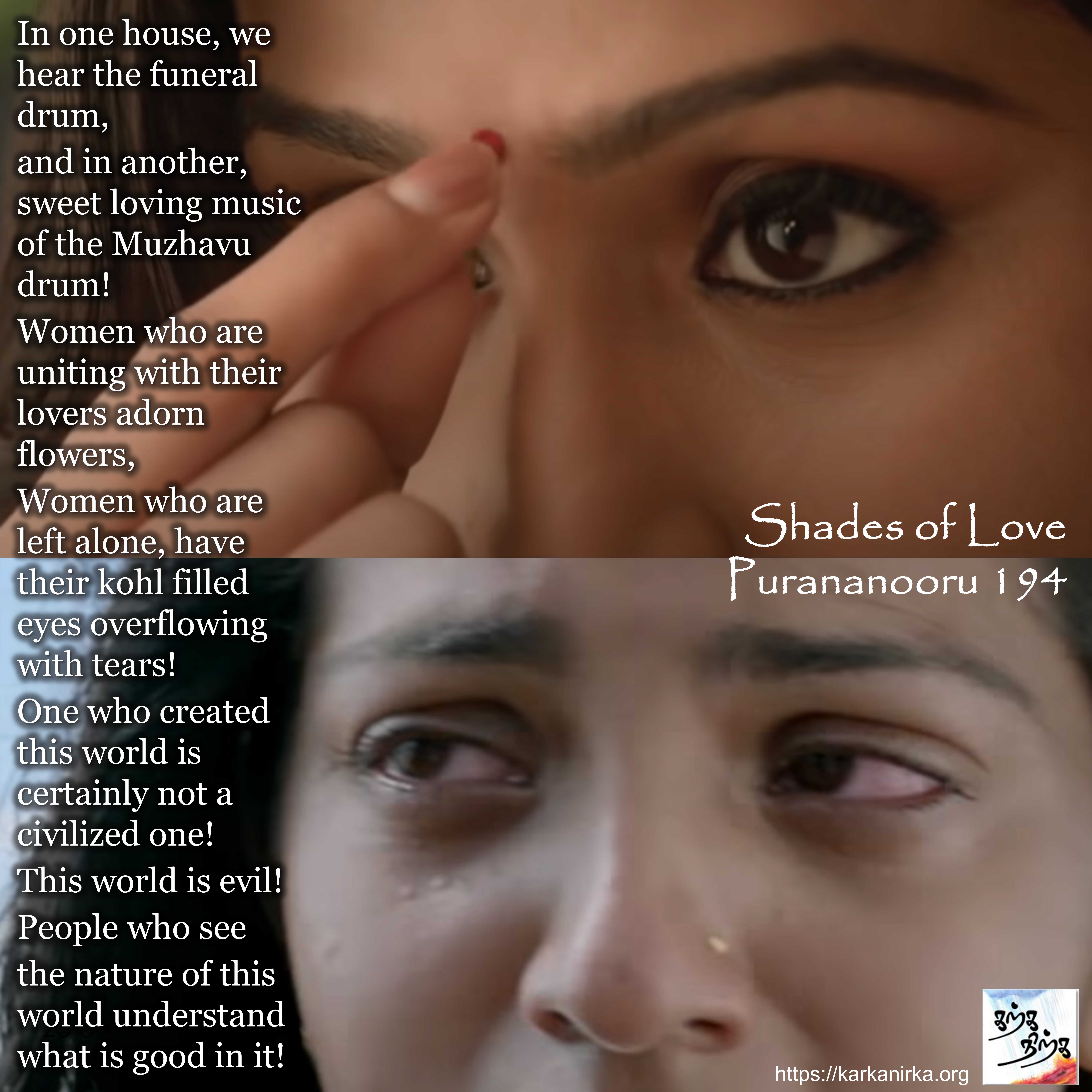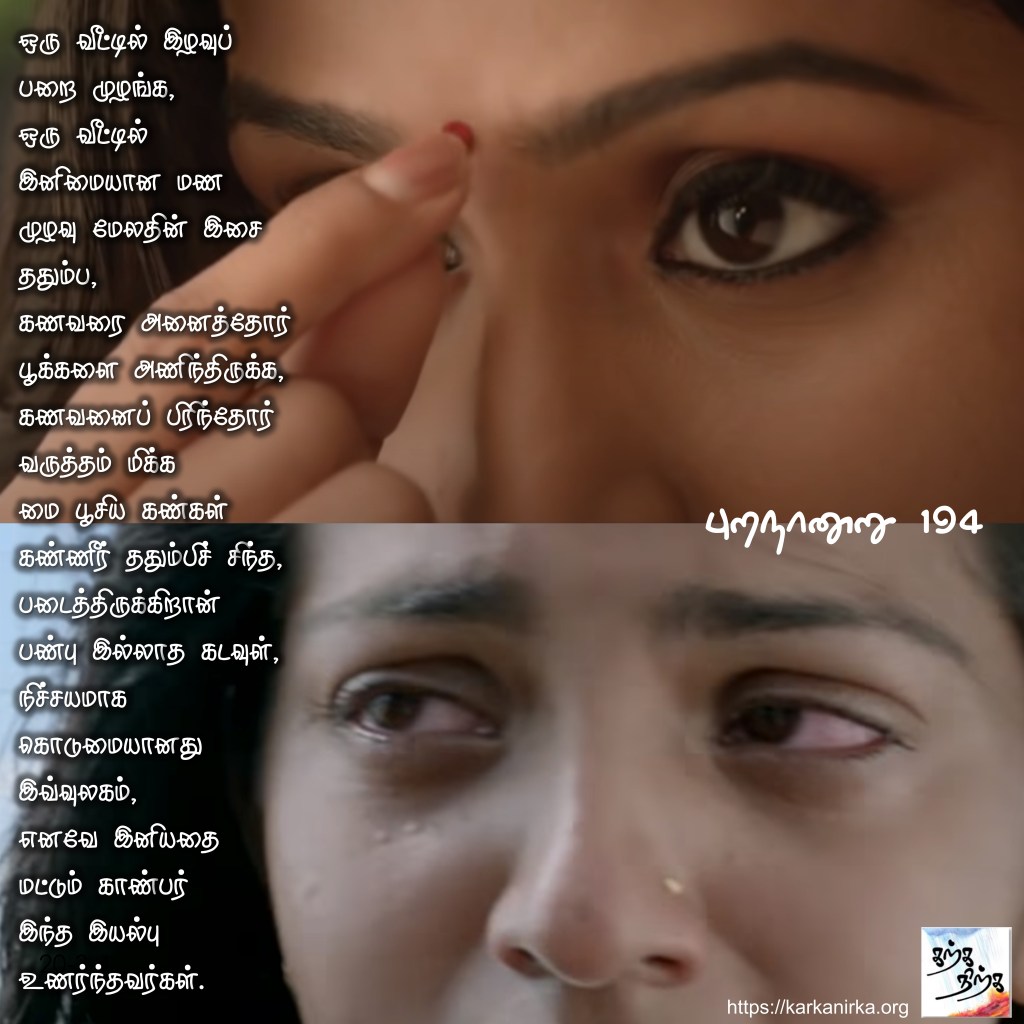 puṟanāṉūṟu 194, pāṭiyavar: pakkuṭukkai naṉkaṇiyār, tiṇai: potuviyal, tuṟai: poruṇmoḻik kāñci