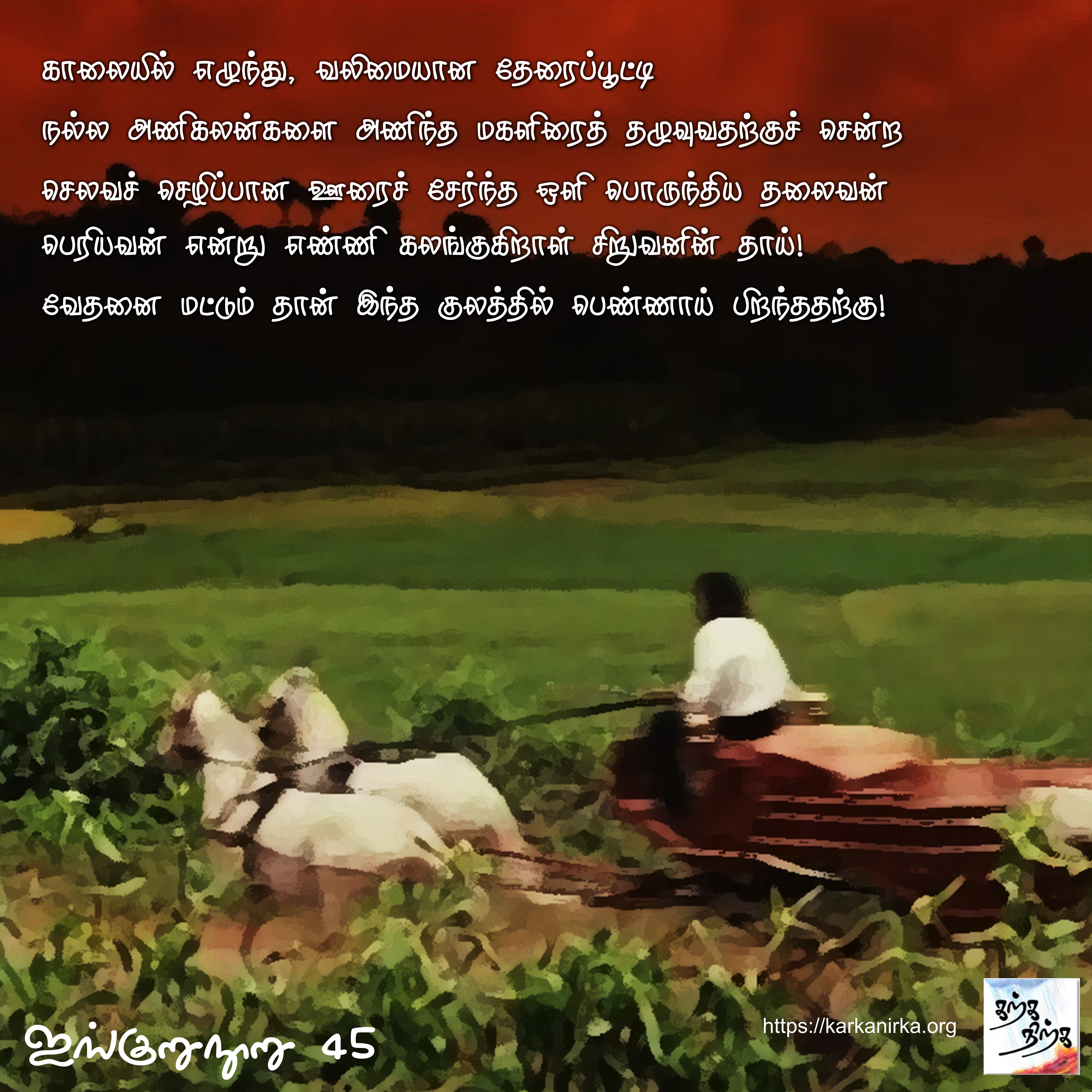 kuṟuntokai 45, ālaṅkuṭi vaṅkaṉār, marutat tiṇai – tōḻi coṉṉatu
