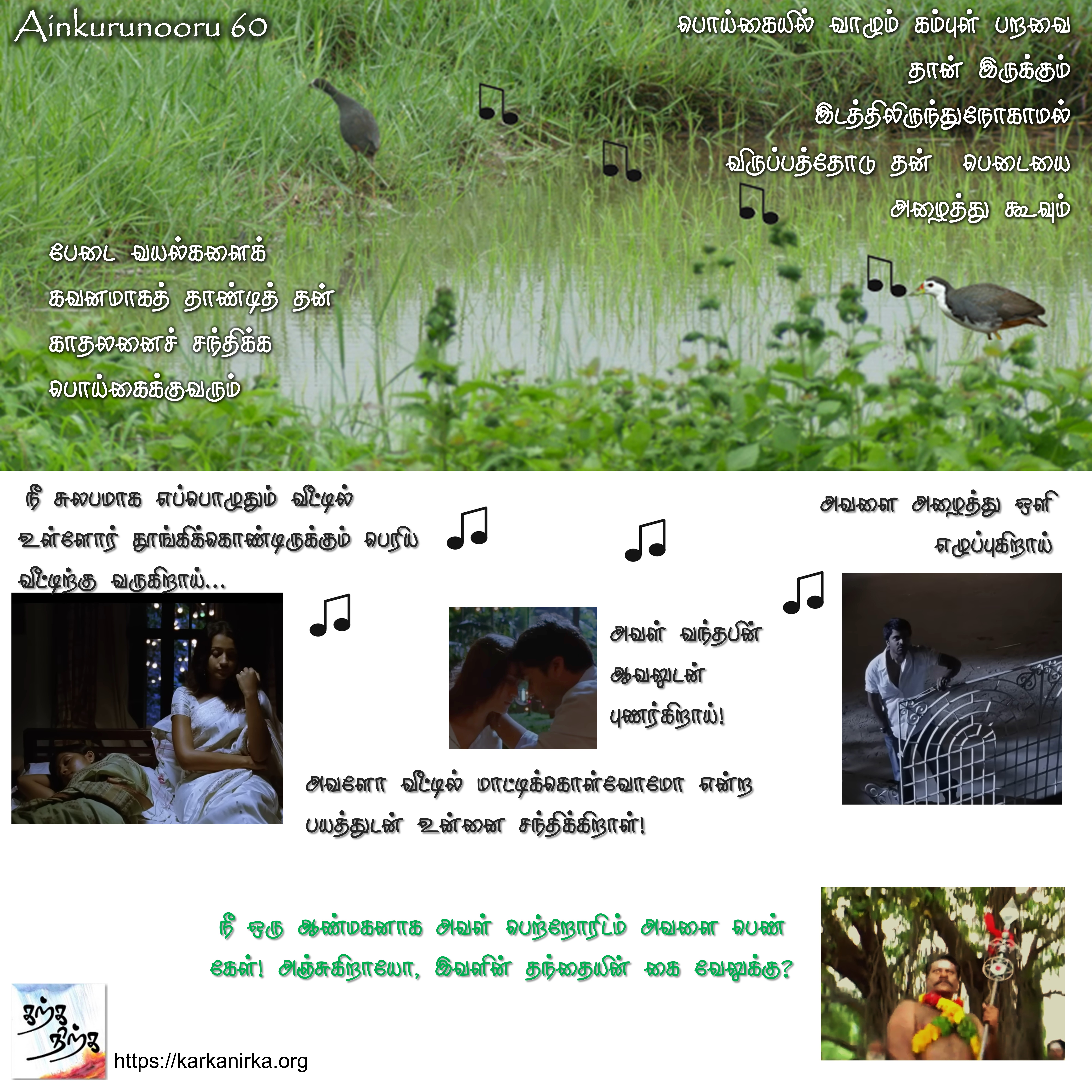 Ainkurunūru 60, Ōrampōkiyār, Marutham Thinai – What the heroine’s friend said to the hero