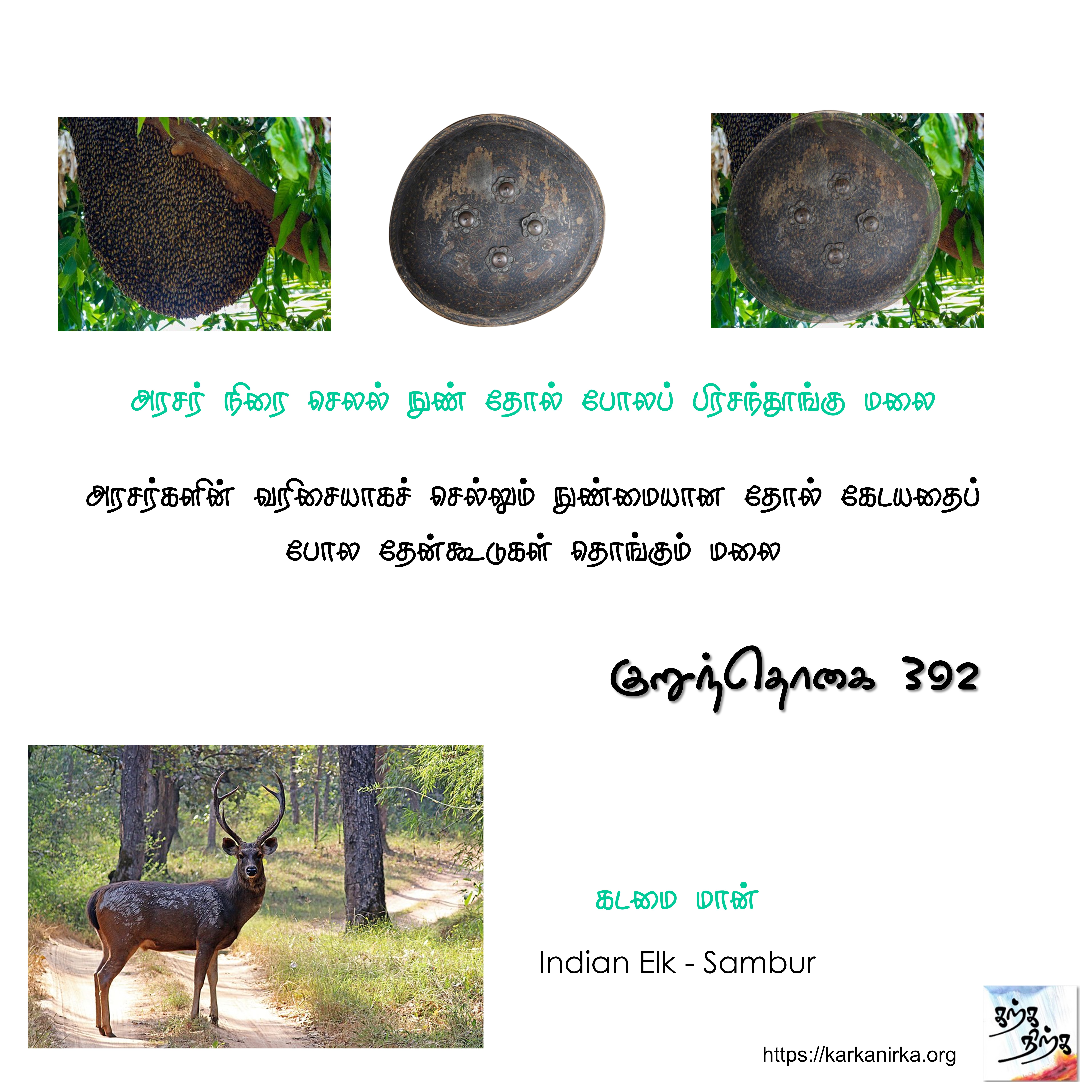 kuṟuntokai 392, tumpicēr kīraṉār, kuṟiñcit tiṇai – tōḻi tumpiyiṭam coṉṉatu, ciṟaippuṟattāṉāka irunta talaivaṉ kēṭkumpaṭi
