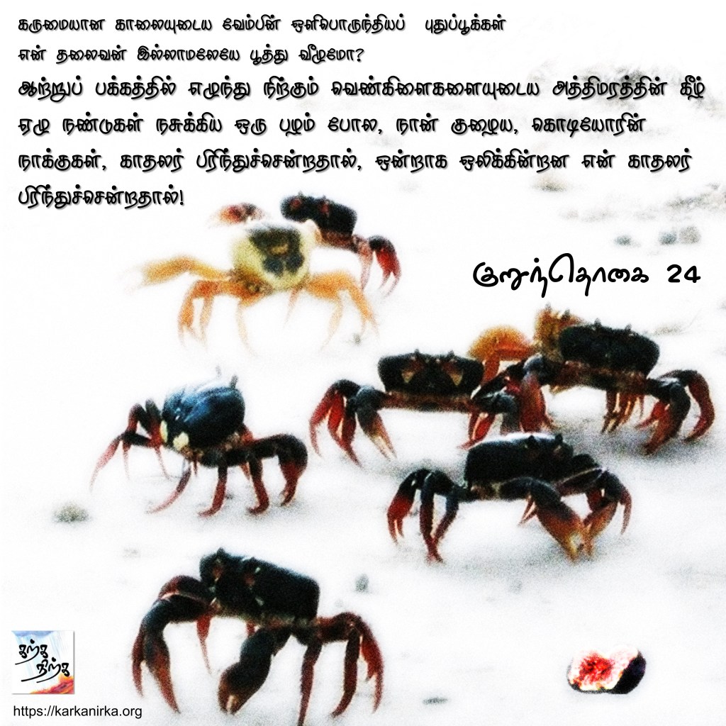 Situation: Thalaivan (hero) is in love with Thalaivi (Heroine) and is far away to earn wealth. He promised to return before the monsoon rains. Rains have poured, flowers have blossomed. Thalaivi utters this poem. #MEMEthokai #karkanirka