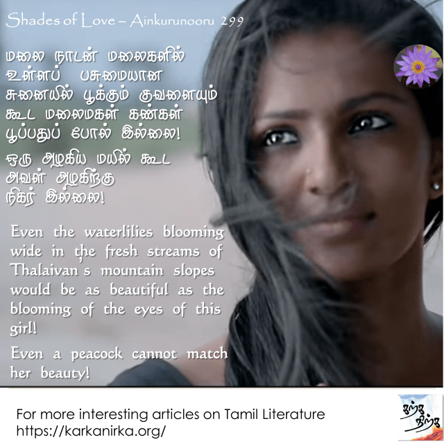 Even a peacock cannot be so lovely as she -Ainkurunuru299